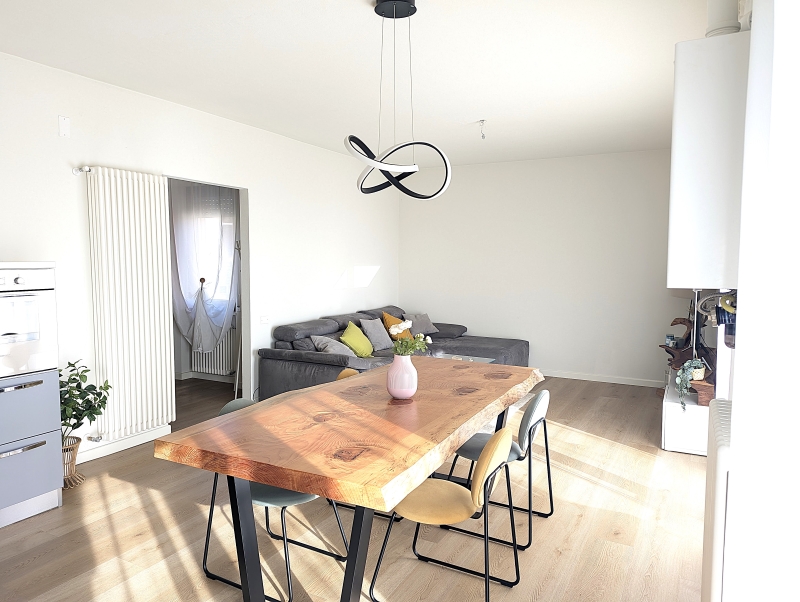 Valdagno: in un contesto bifamiliare, presentiamo un appartamento di c.a 95 mq calpestabili, completamente ristrutturato nel 2023,composto da: ingresso, soggiorno con angolo cottura, un lungo poggiolo, due camere, un bagno finestrato con doccia, un garage, un posto auto coperto, una cantina, una taverna con camino e un giardino privato di c.a 110 mq. Viene consegnato completamente arredato come da foto ragion per cui si annullano totalmente l'ansia, gli sforzi fisici ed il costo del trasloco. Tutti gli impianti sono certificati e a norma. La caldaia è a condensazione e i serramenti sono in PVC. Siamo zona semi-collinare e quindi sinonimo di pace e serenità tanto ricercate